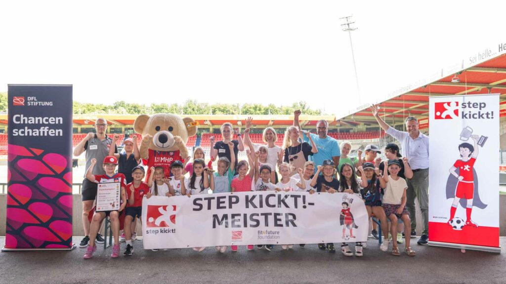 Vom 11. März bis 17. Mai 2024 haben 1.500 Schülerinnen und Schüler am bundesweiten Schritte-Wettbewerb „step kickt!“ teilgenommen. Das Bewegungsprogramm der DFL Stiftung und fit4future foundation fand bereits zum fünften Mal statt und wurde in Kooperation mit zehn Proficlubs des deutschen Fußballs umgesetzt, die jeweils die Schirmherrschaft für mehrere Klassen und Schulen übernahmen. Gemeinsam motivierte man Grundschulkinder aus 73 dritten und vierten Klassen zu mehr Bewegung und klärte über gesunde Ernährung auf.