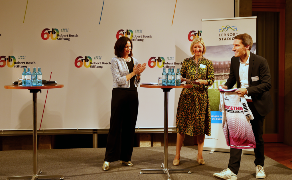 In den Räumlichkeiten der Robert Bosch Stiftung in Berlin wurde im Rahmen eines vielfältigen Abendprogramms auf das Erreichte der vergangenen Jahre zurückgeblickt und ein Ausblick in die Zukunft gegeben. Neben einer Keynote von Thomas Krüger (Präsident der Bundeszentrale für politische Bildung) zur politischen Bildung in angespannten Zeiten zählte ein Bühnengespräch zwischen Franziska Fey (Vorstandsvorsitzende der DFL Stiftung), Birger Schmidt (Geschäftsführer des Lernort Stadion e.V.) und Melanie Dense (Vorständin des Lernort Stadion e.V.) zu den Programmpunkten der Veranstaltung. Zudem kamen in Videobeiträgen und Kurzgesprächen langjährige Wegbegleiter – darunter Engagierte der Standorte und Jugendliche selbst – zu Wort.