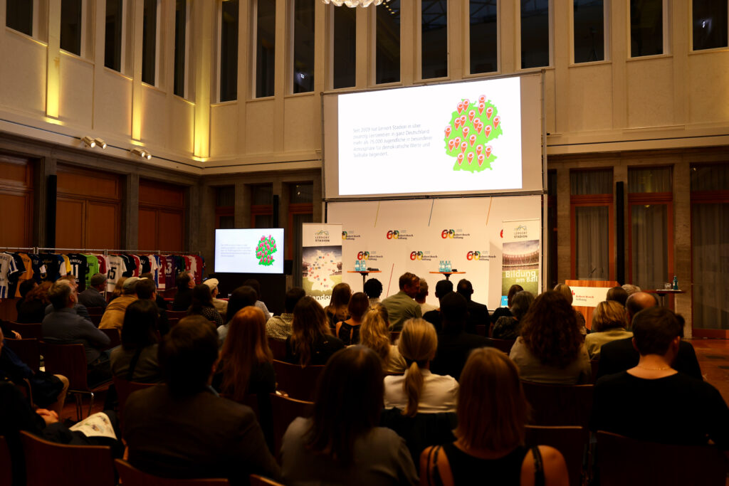 Am Abend des 23. September feierte der Dachverband Lernort Stadion e.V. gemeinsam mit Unterstützerinnen und Unterstützern, Partnerorganisationen sowie geladenen Gästen aus Politik, Sport, Wirtschaft, Kultur und Zivilgesellschaft das 15-jährige Bestehen des politischen Bildungsprogramms „Lernort Stadion“. Seit 2009 nutzt der Verein die Faszination Fußball, um Jugendliche dazu zu ermutigen, sich mit gesellschaftlichen Diskursen auseinanderzusetzen und eine eigene Haltung zu entwickeln. Schulklassen und Jugendgruppen kommen in die großen Stadien Deutschlands und beschäftigen sich mit Themen wie Vielfalt, Geschlechtergerechtigkeit, Antidiskriminierung oder Fair Play.