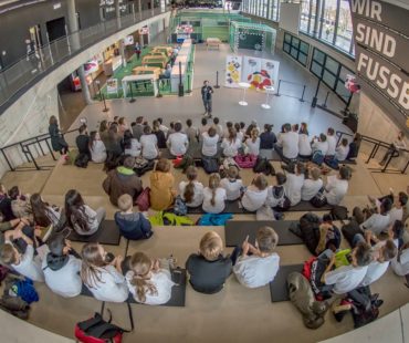 Die Ausschreibung an die Verlage startet im Nachgang zur Buchmesse. Mit den Shortlist-Titeln sind im Frühjahr 2018 Lesungen in Fußballstadien vorgesehen, die Preisverleihung soll kurz vor der Fußball-Weltmeisterschaft im Deutschen Fußballmuseum stattfinden. Eine weitere Besonderheit: Zum ersten Mal gibt es eine eigene Kinderjury, die das Votum der anderen Juroren rund um Profifußballer Manuel Neuer ergänzt. Jonas Kozinowski, Autor des WAS IST WAS-Fußballbuchs und Preisträger 2017, war mit seinem Siegerbuch auch in Schulklassen unterwegs. „Das Thema Fußball ist dankbar“, erzählt er. „Da sind die Kinder auch nach einem langen Schultag noch motiviert – und wenn das Ganze dann noch im Stadion stattfindet, ist das natürlich der Hammer.“