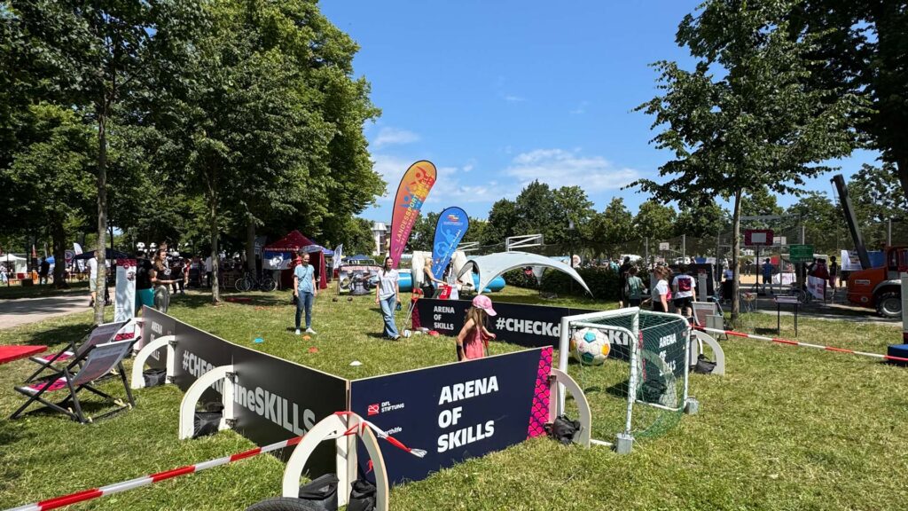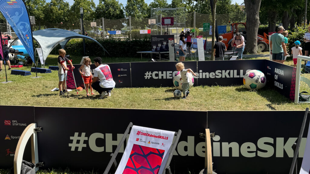 In der Arena of Skills können Kinder eine spannende Auswahl an Sportarten ausprobieren und dabei an jeder Station Stempel für ein Gewinnspiel sammeln. Zusätzlich erhalten die Teilnehmenden und ihre Eltern vor Ort Informationen zu regelmäßigen Sportangeboten in Vereinen.