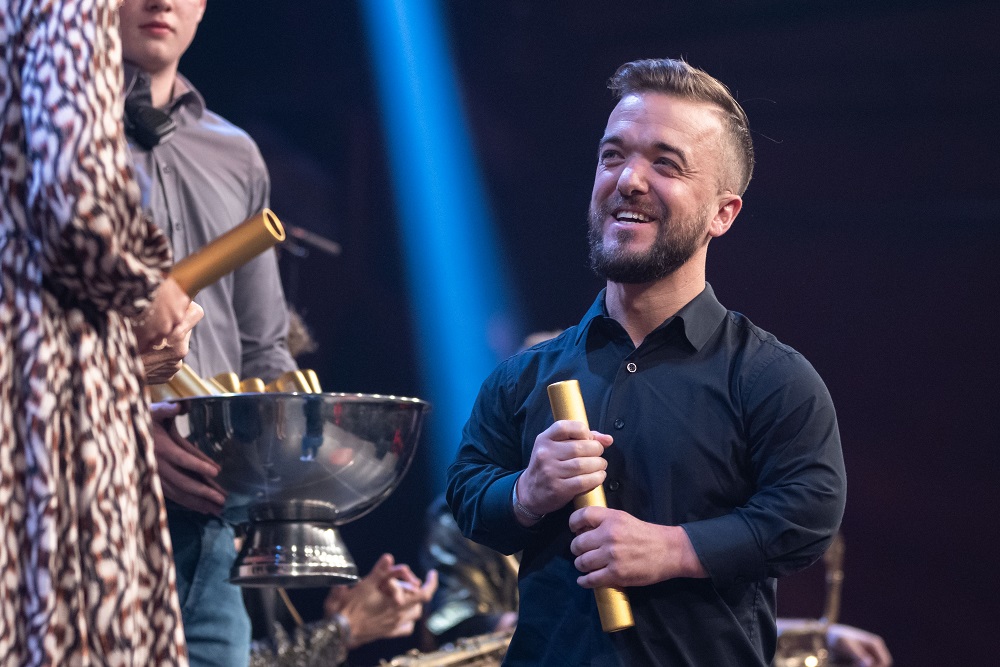 Taliso Engel hält seinen Preis in den Händen.