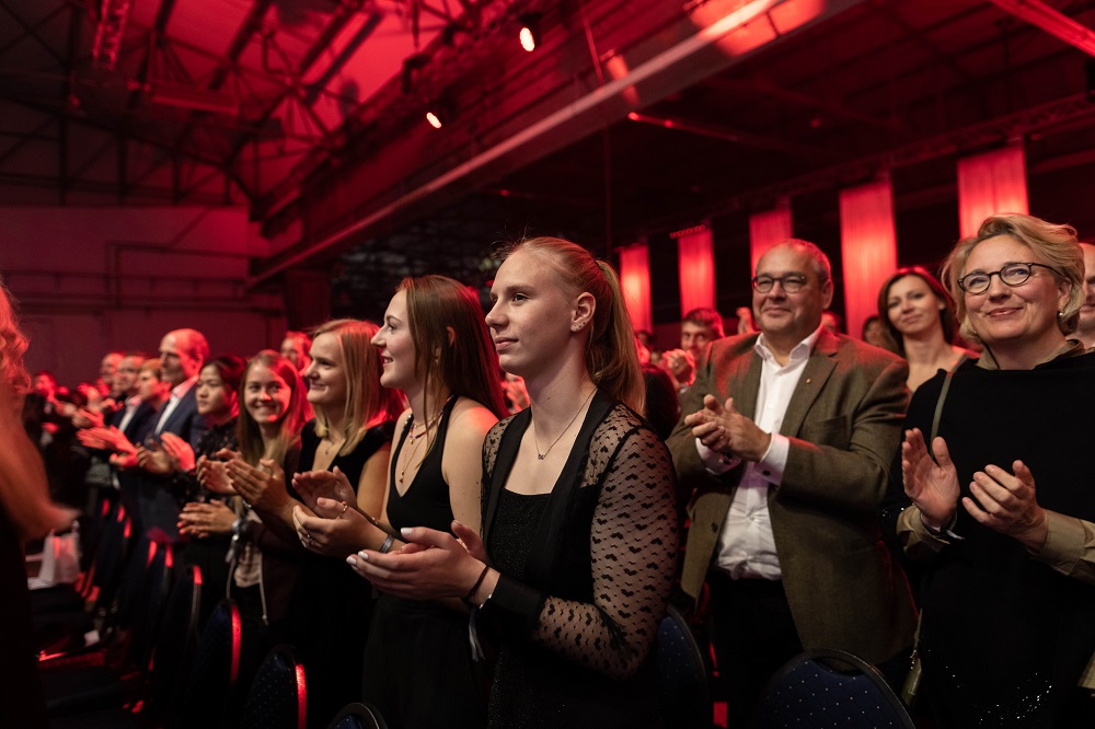 Unter dem Motto „DANKE 2021“ haben die DFL Stiftung und die Deutsche Sporthilfe an diesem Abend wieder die Leistungen von knapp 30 Athletinnen und Athleten gewürdigt, die ihre leistungssportlichen Karrieren beendet haben. Unter ihnen auch zehn Sportlerinnen und Sportler, die bereits von der Nachwuchselite-Förderung profitiert haben. Alle erhielten einen Staffelstab als symbolisches Zeichen für den Übergang in ihre zweite, die berufliche Karriere.