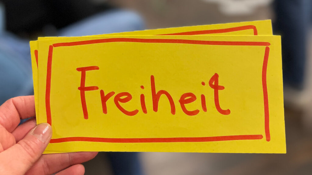 Nach einem kurzen Warm-up am Mittwoch startete ein aufschlussreiches Gruppenexperiment: Jede*r Teilnehmer*in erhielt eine von vier Formen auf den Rücken geklebt. Zunächst bildeten sich Gruppen basierend auf den Formen, anschließend sollten sich die Jugendlichen mischen – eine bildhafte Darstellung unserer Gesellschaft, die verdeutlichte, wie wichtig Respekt und Offenheit gegenüber allen Menschen sind. Der darauffolgende Film zur systemischen Diskriminierung regte intensive Diskussionen an und vertiefte das Verständnis für gesellschaftliche Herausforderungen.