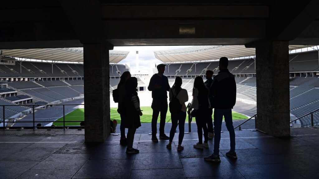 Der Workshop begann am Dienstag mit einer ersten Kennenlernrunde in der Kurve des Olympiastadions. Nach einer Namensrunde und der Vorstellung des Ablaufs diskutierten die Jugendlichen in einem Barometer-Experiment über die Frage: „Sicherheit oder Freiheit?“. Ein besonderes Highlight war die anschließende Führung durch das Stadion, bei der die Teilnehmenden nicht nur die beeindruckende Architektur bestaunen, sondern auch geschichtliche Hintergründe zum Bau des Stadions kennenlernen konnten.