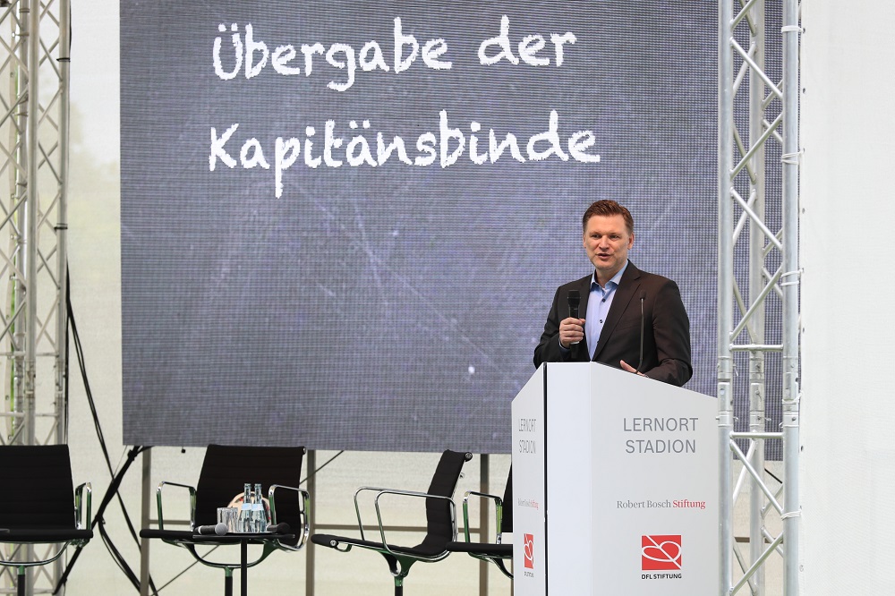 Am heutigen Tag übergab die Robert Bosch Stiftung nach acht Jahren die Kapitänsbinde des Hauptförderers von „Lernort Stadion“ an die DFL Stiftung.