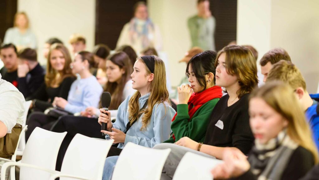 Anschließend kamen alle zur Keynote „Jugend, Einsamkeit, Demokratie“ von Melanie Weiser vom Progressiven Zentrum zusammen, die spannende Zusammenhänge aufzeigte und die Diskussionsgrundlage des weiteren Tages legte. Danach begann der interaktive Teil der Veranstaltung: Jugendliche und Erwachsene konnten aus einem vielfältigen Workshop-Angebot wählen. Diskutiert wurde unter anderem zu den Themen Hate Speech im Netz, Meinungsfreiheit in den Medien, Klima und Gesundheit sowie Vielfalt und Inklusion. Das Besondere: Jugendliche und Erwachsene kamen gleichermaßen zu Wort, wodurch ein Austausch in altersgemischten Gruppen über aktuelle Diskursthemen entstand.