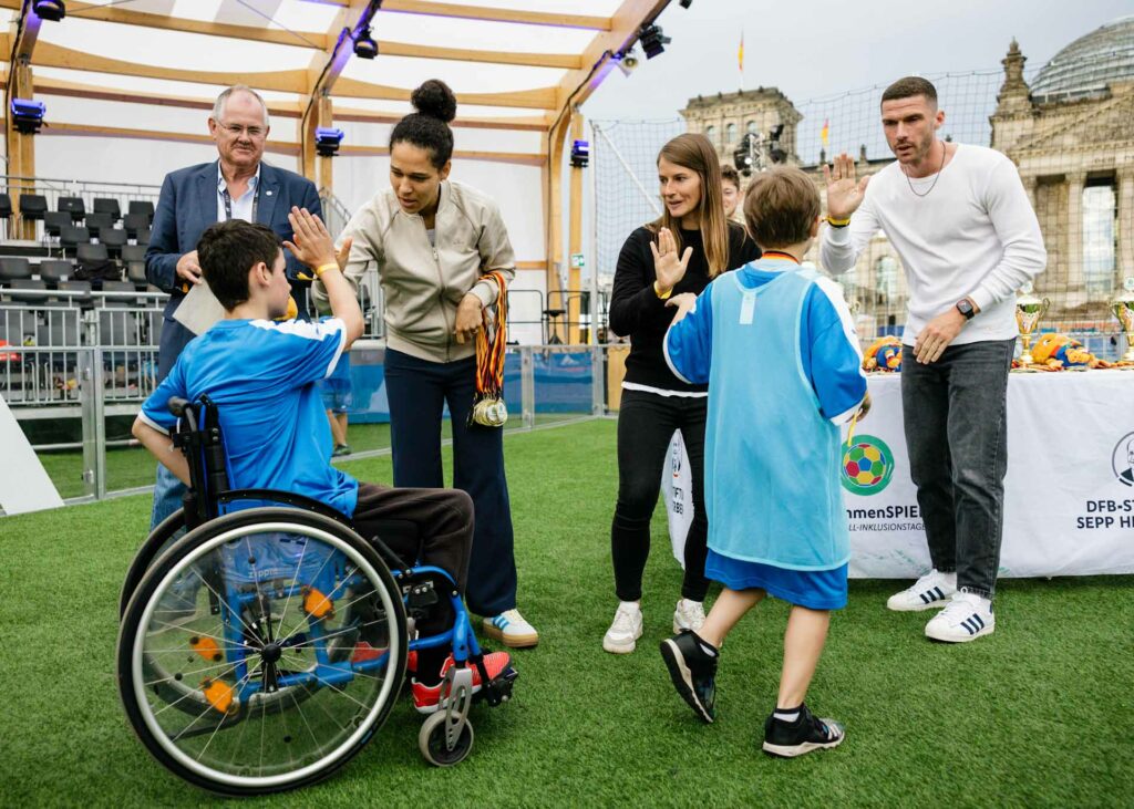 Bei der abschließenden Siegerehrung überreichten die DFB-Vizepräsidentin und EM-Botschafterin Célia Šašić, der Fußballprofi Robin Gosens (1. FC Union Berlin) und die Co-Trainerin des 1. FC Union Berlin, Marie-Louise Eta, den Kindern und Jugendlichen die Medaillen und Pokale. Abgerundet wurde der abwechslungs- und ereignisreiche Tag durch die Erfüllung zahlreicher Foto- und Autogrammwünsche der Kinder und Jugendlichen.