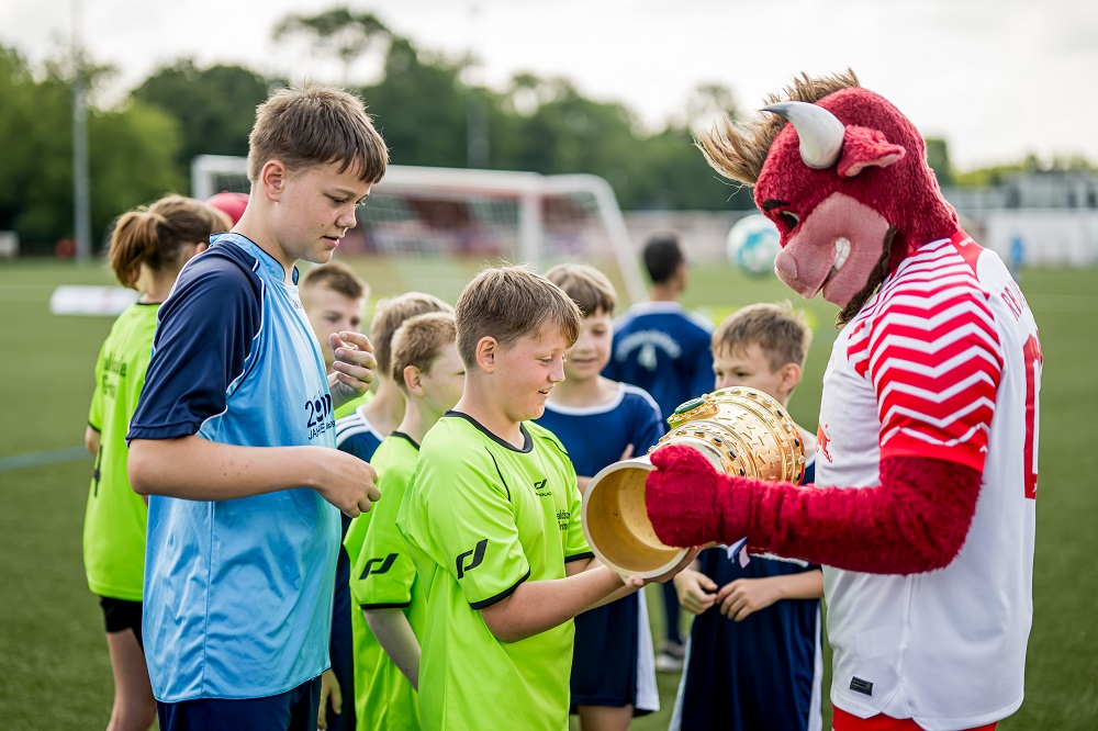 Auf die Spielerinnen und Spieler warteten packende Duelle mit zahlreichen Toren, starken Paraden und vielen Emotionen. Für zusätzliche Motivation sorgte der Besuch von RB Leipzigs Maskottchen Bulli, der die Trophäe des frisch gebackenen DFB-Pokalsiegers im Gepäck hatte.