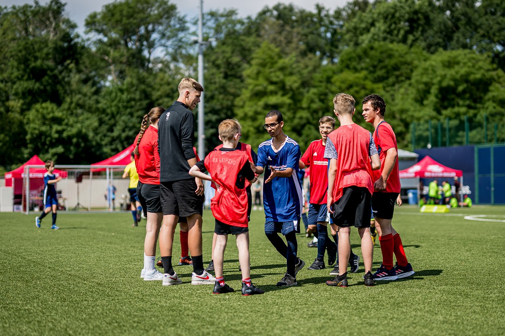 Beste Bedingungen fanden die rund 60 Kinder und Jugendlichen mit und ohne Behinderung im Alter von zehn bis 15 Jahren auf dem Trainingsgelände am Cottaweg vor. Die Organisation übernahm der RB Leipzig zusammen mit dem Sächsischen Fußballverband und Engagierten des Fanclubs „FreundeskreisRBL“.