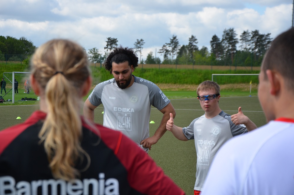 Die Tandems konnten ihr neues Wissen in zwei praktischen Einheiten mit den Inklusionsteams des FC Viktoria Köln und des FC Germania Zündorf anwenden. Insgesamt wurde dabei sowohl mit Kindern als auch Erwachsenen mit Behinderungen ein inklusives Fußballtraining durchgeführt. Nach den praktischen Einheiten erhielten die Tandems in sogenannten Mentoring-Einheiten individuelles Feedback und konnten so gemeinsam mit den Instruktor*innen Verbesserungsaspekte besprechen und Ziele für ihre zukünftige Arbeit setzen.