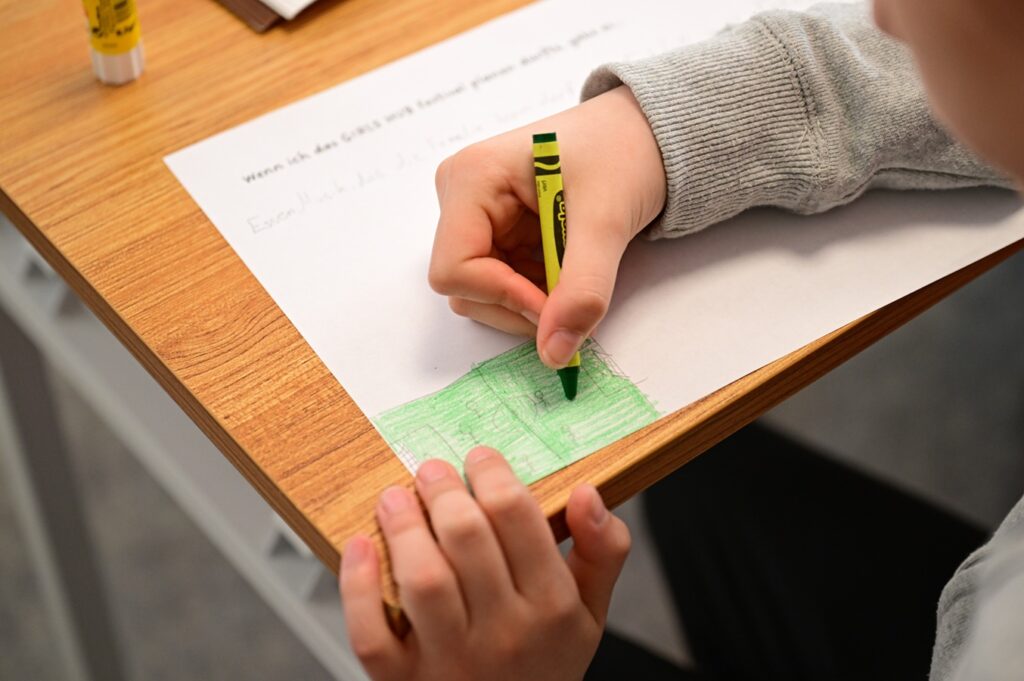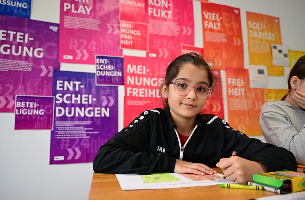 Nachdem Viktorija und ihre Freundinnen sich ein bisschen ausgetobt haben, bittet Julia Knopf die versammelte Mädchenschar in den größten der drei Container. An den Wänden kleben allerlei Plakate mit klar formulierten Botschaften: „Vielfalt“, „Solidarität“ oder „Gerechtigkeit“. Oder: „Female Empowerment“ und „You can, Girl!“ Die Mädchen platzieren sich um drei Tische herum. Buntstifte und Zeichenpapier machen die Runde. Julia Knopf flitzt zwischen den Tischen umher, tatkräftig unterstützt von den Trainerinnen Nour und Alena. Die Mädchen malen den Safe-Hub in ihrer ganz persönlichen Idealwelt. Viktorija entwirft eine Skaterbahn und Lara eine Bühne, auf der sie später tanzen und singen will. „Können wir nicht ein bisschen Musik anstellen?“ Na klar, kein Problem, und schon groovt es aus der großen Box in der Mitte des Containers. Die Gestaltung des Safe-Hub nach eigenen Vorstellungen ist ein klassisches partizipatives Instrument und ermöglicht den Mädchen, kreativ und ohne sprachliche Barrieren Wünsche zu äußern und Visionen zu entwickeln.