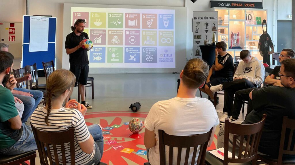 Am Montag, den 13. Mai fand in der BildungsArena von Eintracht Frankfurt der Auftakt-Workshop statt. Die teilnehmende Ausbildungsgruppe beschäftigte sich unter anderem mit den folgenden Fragen: