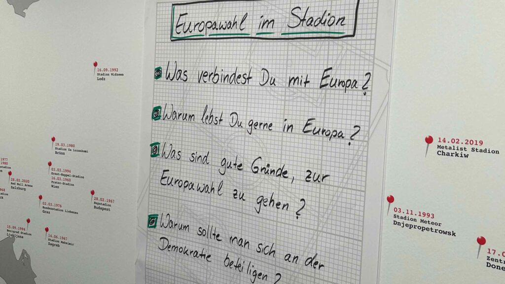 In Kooperation mit dem Lernort Stadion e.V. und den Projektstandorten in ganz Deutschland werden vom 13. bis 24. Mai Workshops für Jugendliche angeboten, in denen sie über die europäische Gemeinschaft sprechen, verschiedene Möglichkeiten der politischen Beteiligung kennenlernen und zur Teilhabe ermutigt werden. Sie erfahren, welche Chancen das Wahlrecht ab 16 für junge Menschen bietet und warum sie ihre Stimme bei der Europawahl nutzen sollten.