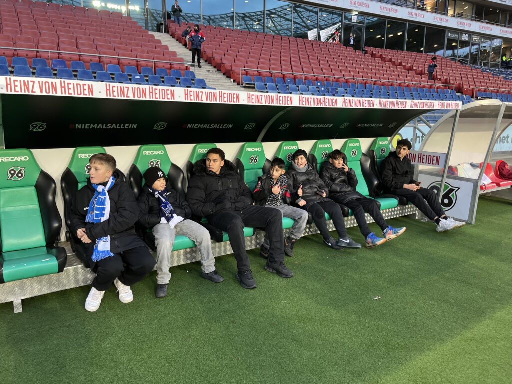 Mit strahlenden Augen und großer Vorfreude reisten Jugendliche aus Berlin nach Hannover, um ein besonderes Erlebnis zu teilen: Jessic Ngankam, Stürmer von Hannover 96 und „großer Bruder“ des MitternachtsSport e.V., hatte sie zu einem spannenden Spiel in der 2. Bundesliga eingeladen. Die Partie zwischen Hannover 96 und Hertha BSC in der ausverkauften Heinz von Heiden Arena endete zwar torlos 0:0, doch der Tag hatte weit mehr zu bieten als nur Fußball.