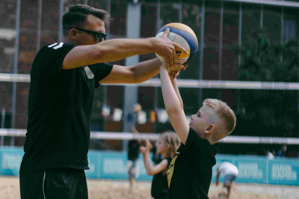 Wer kann schon von sich behaupten, von einem Nachwuchsbundestrainer Tipps erhalten zu haben? Das Beachvolleyball-Schnuppertraining leitete Kersten Holthausen, der normalerweise für Deutschlands Nachwuchstalente zuständig ist. Er erklärte den Kindern die Grundidee vom Beachvolleyball und führte mit ihnen erste Basisübungen auf spielerische Art und Weise durch. Nach dem rund 30-minütigen Training im tiefen Sand waren die Kinder ausgepowert, aber glücklich.