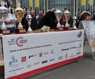 Bei gutem Wetter spielten die Mannschaften in den Altersklassen U11, U13, U15 und U17 ihre Meister aus. Die großen Wanderpokale und Preise für die Siegerteams überreichten u.a. Frankfurts Oberbürgermeister Peter Feldmann, Liga-Schirmherr Philip Holzer (Business for Sports e.V.) und Klaus-Peter Müller (stv. Kuratoriumsvorsitzender der DFL Stiftung). Auch Torsten Becker vom Hessischen Fußballverband, Sportkreis-Vorsitzender Roland Frischkorn und Gudrun Backhaus von Eintracht Frankfurt e.V. gratulierte den Teams zu ihrer Leistung. Nicht nur der sportliche Erfolg wurde belohnt – ausgezeichnet wurden auch die fairsten Mannschaften und die besten Gastgeber der Saison.