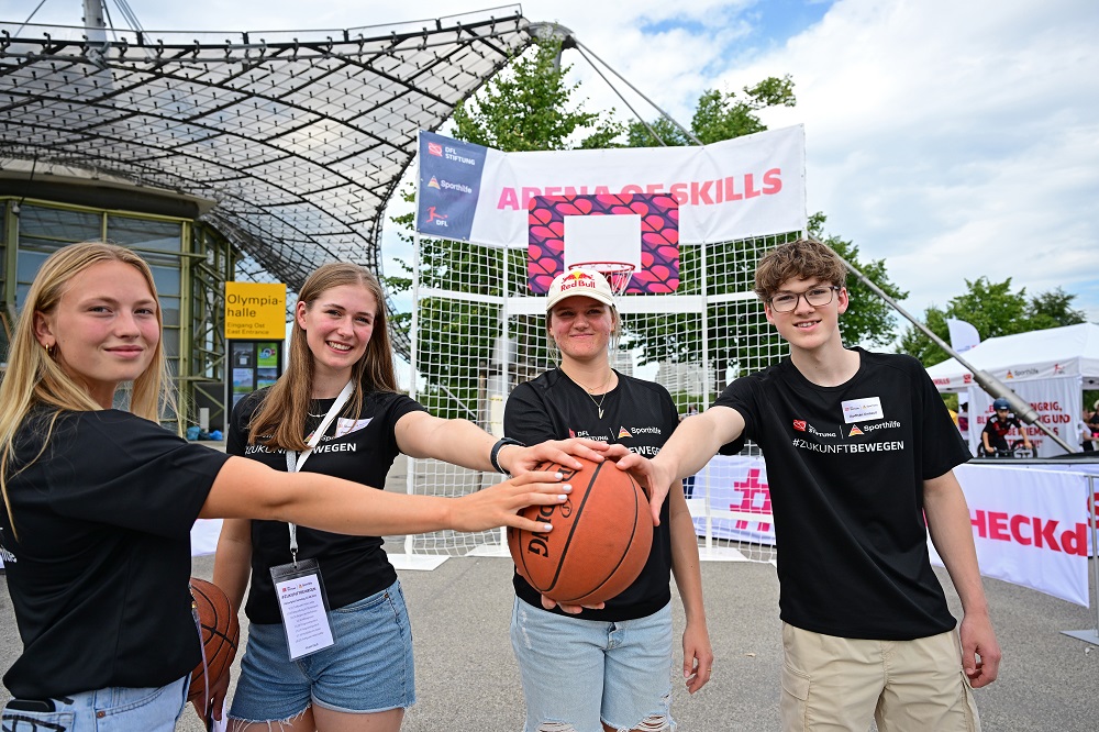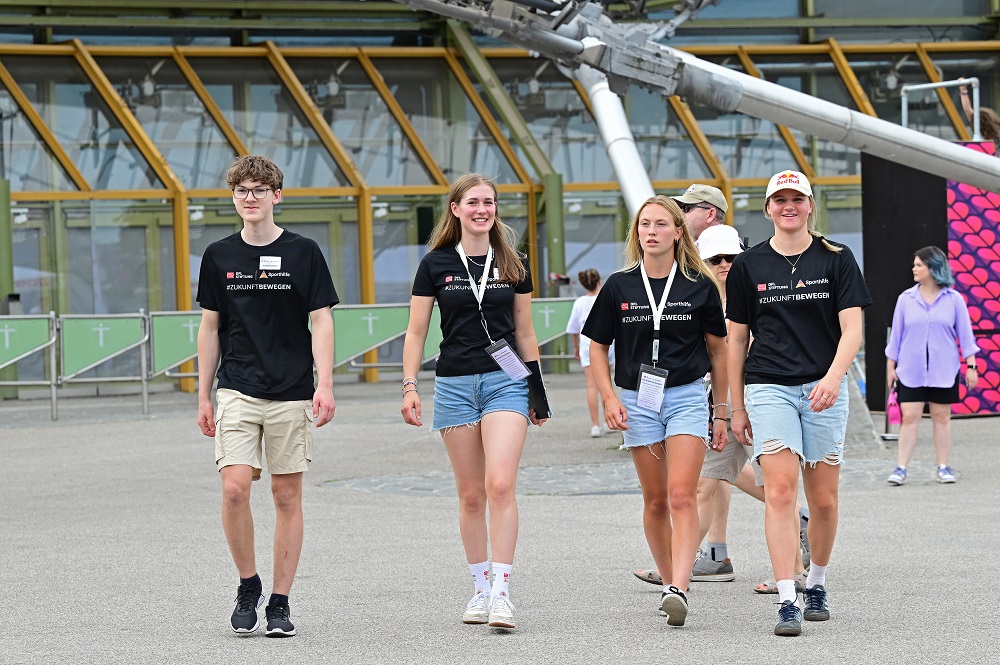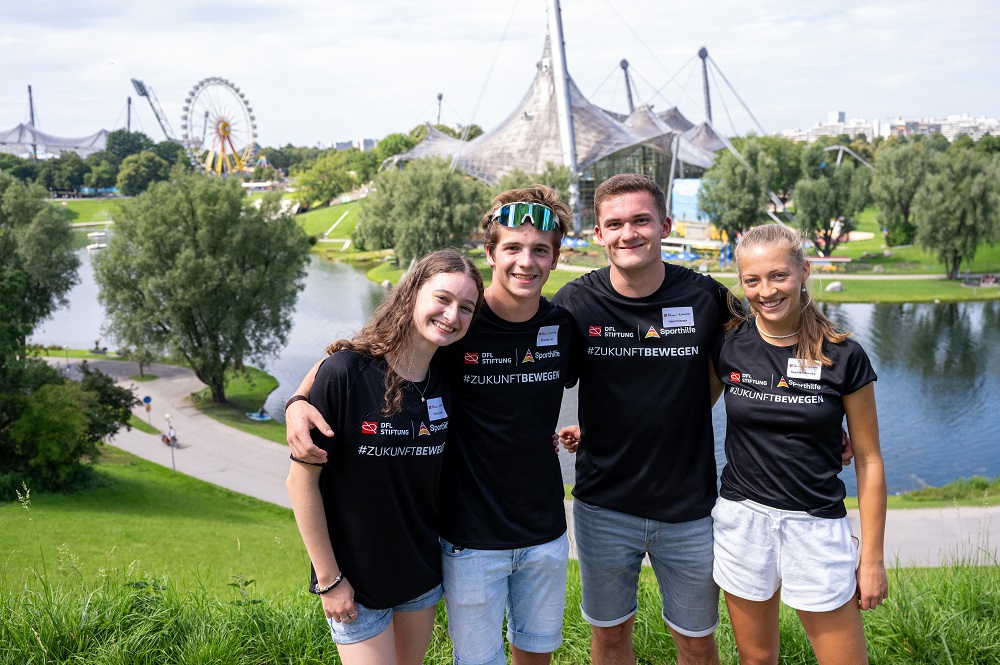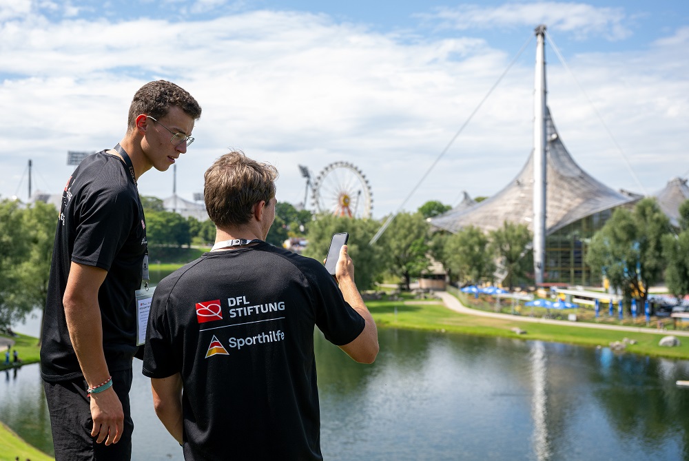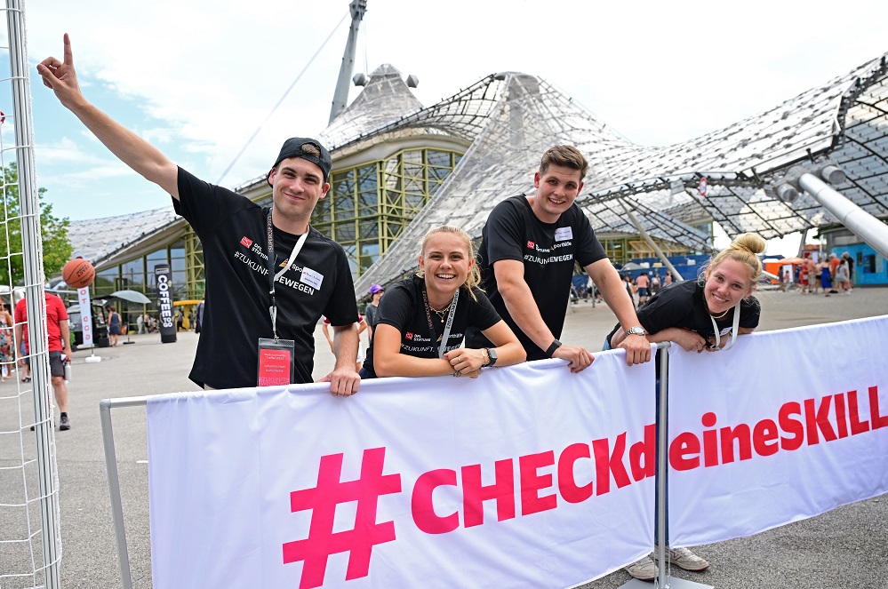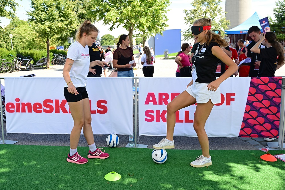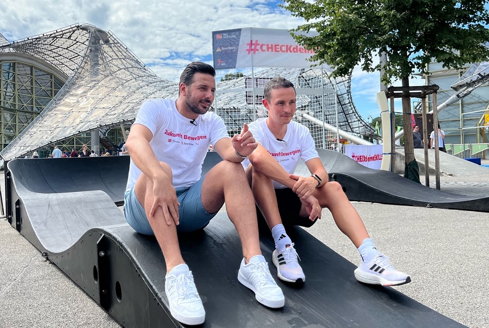 Bewegung, Action und Wissen standen bei einer Team-Challenge im Olympiapark mit vier Stationen im Mittelpunkt. Beim Tretbootfahren, Sportquiz und Riesen-Yenga galt es, möglichst viele Punkte für die eigene Gruppe zu sammeln. Besonders sportlich wurde es bei einer Station – der „Arena of Skills“. Beim Bewegungsparcours von DFL, DFL Stiftung und Sporthilfe im Rahmen der Initiative #ZukunftBewegen konnten nicht nur die Nachwuchstalente, sondern vor allem Kinder und Jugendliche passend zum Motto #CHECKdeineSKILLS das gesamte Wochenende verschiedene Sportarten wie Blindenfußball oder Skifahren ausprobieren. Unter den Besucherinnen und Besuchern waren auch die beiden ehemaligen Fußballprofis Claudio Pizarro und Roman Weidenfeller sowie der ehemalige Nordische Kombinierer Eric Frenzel und der Kanute Sideris Tasiadis.
