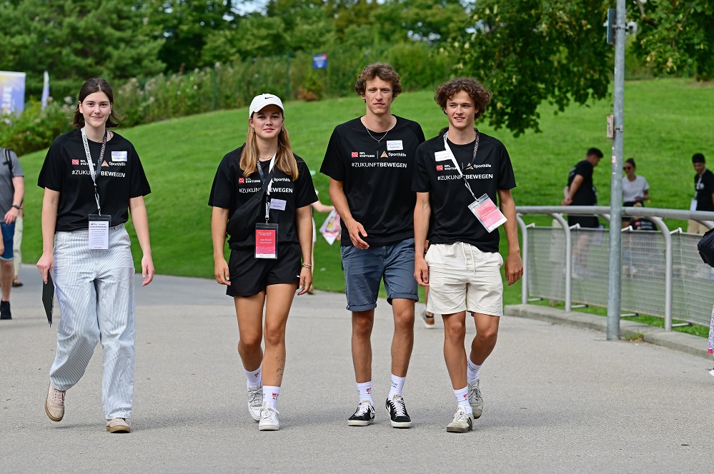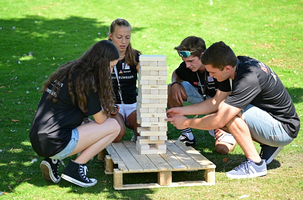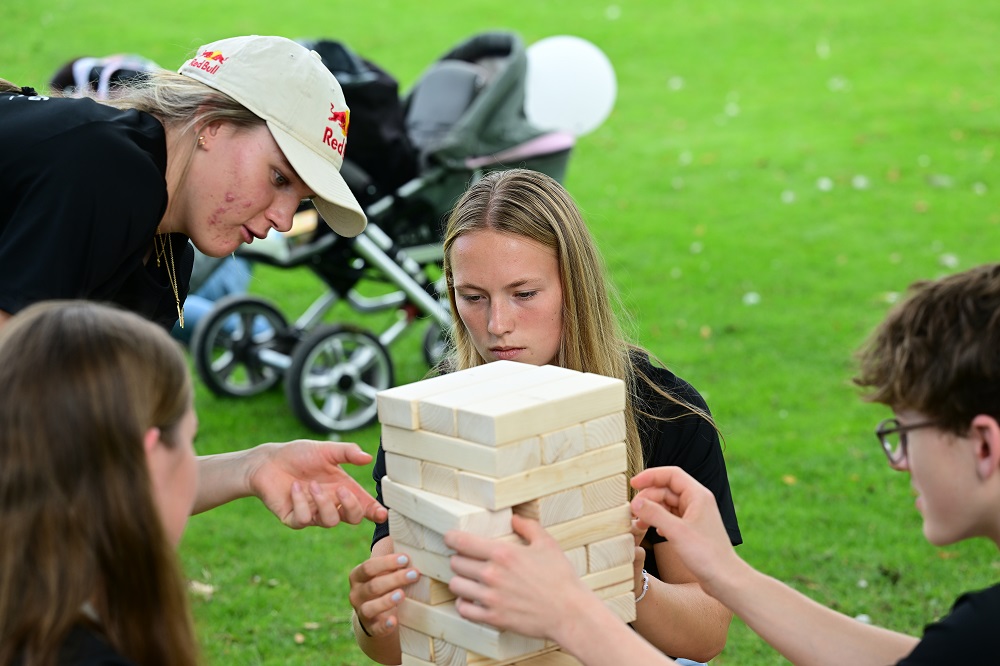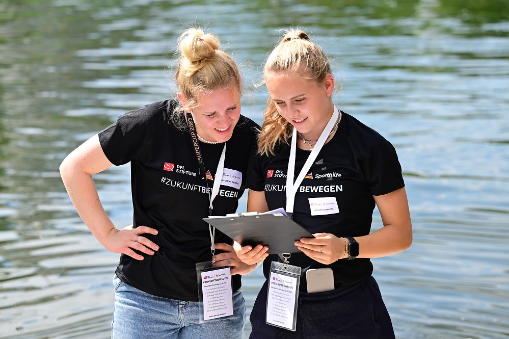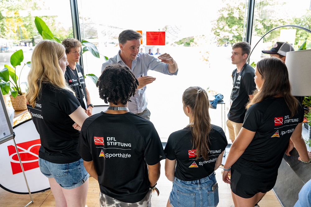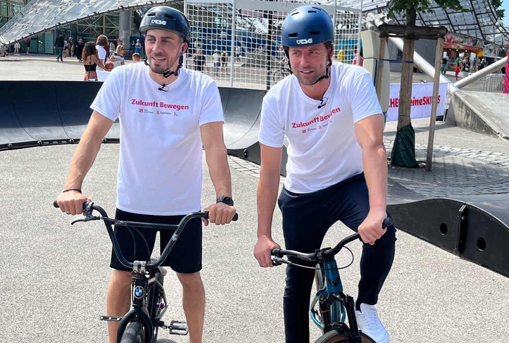 Bewegung, Action und Wissen standen bei einer Team-Challenge im Olympiapark mit vier Stationen im Mittelpunkt. Beim Tretbootfahren, Sportquiz und Riesen-Yenga galt es, möglichst viele Punkte für die eigene Gruppe zu sammeln. Besonders sportlich wurde es bei einer Station – der „Arena of Skills“. Beim Bewegungsparcours von DFL, DFL Stiftung und Sporthilfe im Rahmen der Initiative #ZukunftBewegen konnten nicht nur die Nachwuchstalente, sondern vor allem Kinder und Jugendliche passend zum Motto #CHECKdeineSKILLS das gesamte Wochenende verschiedene Sportarten wie Blindenfußball oder Skifahren ausprobieren. Unter den Besucherinnen und Besuchern waren auch die beiden ehemaligen Fußballprofis Claudio Pizarro und Roman Weidenfeller sowie der ehemalige Nordische Kombinierer Eric Frenzel und der Kanute Sideris Tasiadis.