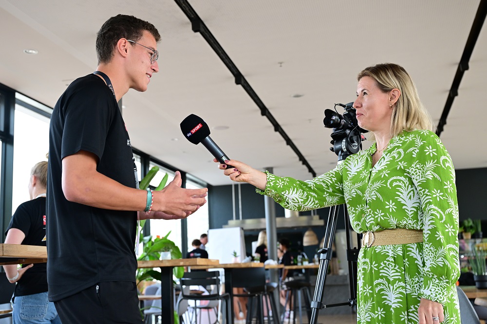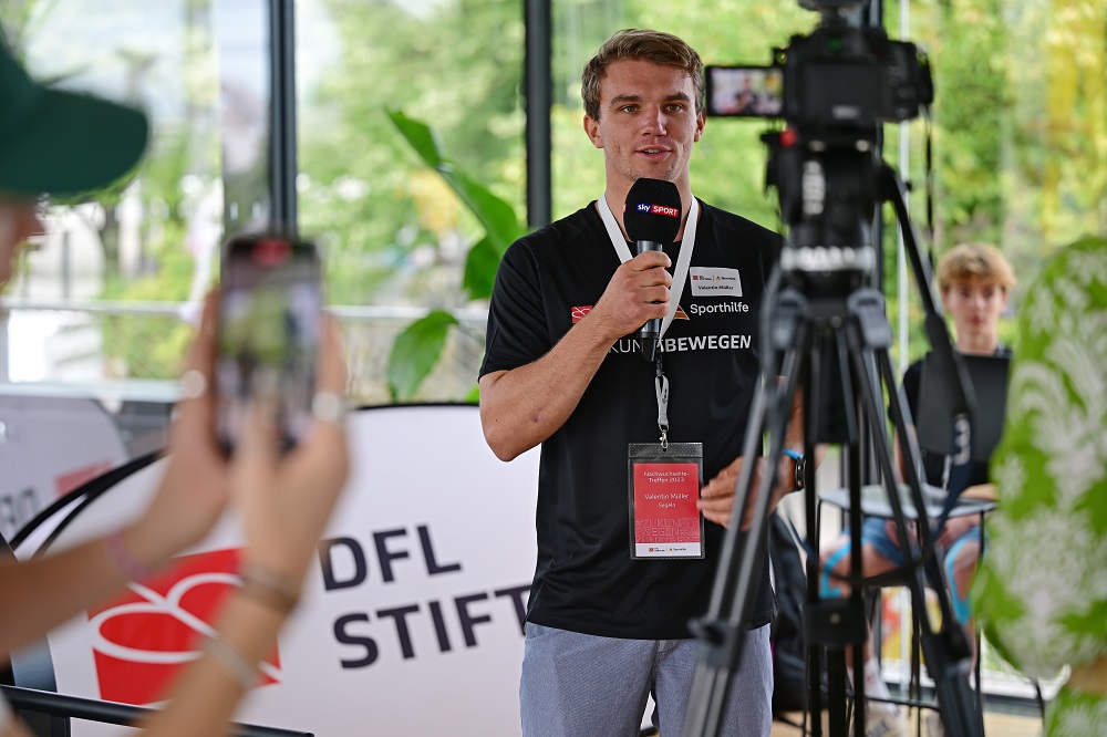 Das in den Workshops Gelernte konnten sie direkt am Nachmittag bei dem „Mini Media Day“ anwenden, bei denen Interviews, Fotos und Quizformate für die Social Media-Kanäle von DFL Stiftung und Sporthilfe aufgenommen wurden.