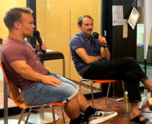 Niko Kappel (Links) im Gespräch mit Simon Horn von der Sporthilfe.