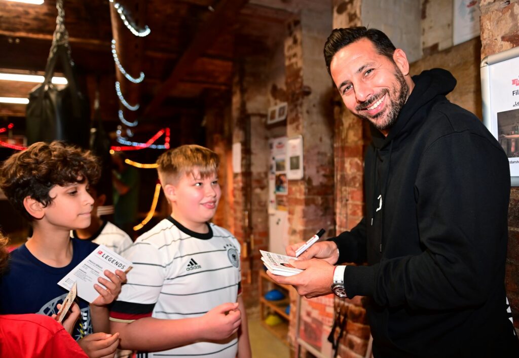 Nach dem gemeinsamen Training schauten die beiden Bundesliga-Legenden Claudio Pizarro und Paulo Sérgio vorbei und stellten sich zusammen mit Lena Büchner den Fragen der Kinder: