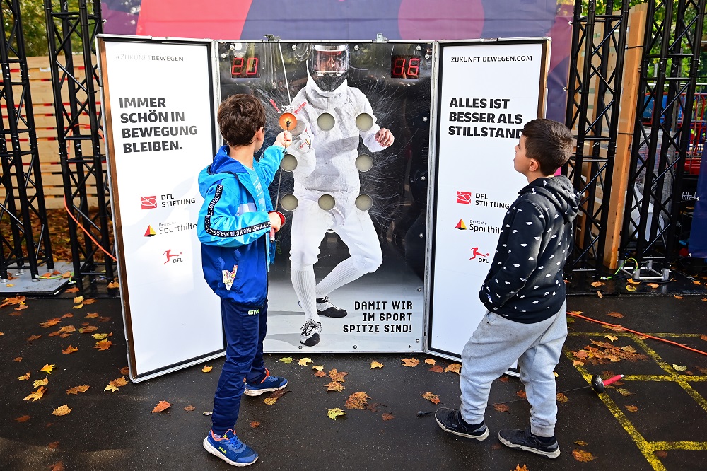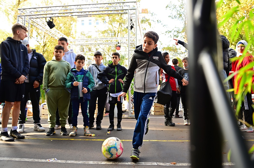 Am Nachmittag besuchte die Gruppe das parallel stattfindende „Bundesliga Common Ground“-Event der DFL Deutsche Fußball Liga, bei dem ein Fußballplatz für junge Menschen wiedereröffnet wurde. Neben einem großen Fußballturnier erwartete die Kinder ein Rahmenprogramm mit Musik und verschiedenen Mitmach-Tools, wie zum Beispiel einer Fecht-Station.